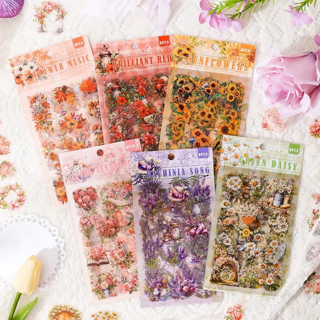 Premium Floral Journaling Stickers l Pack of 6 Sheets l Elegant Floral Stickers for Scrapbooking & Planners