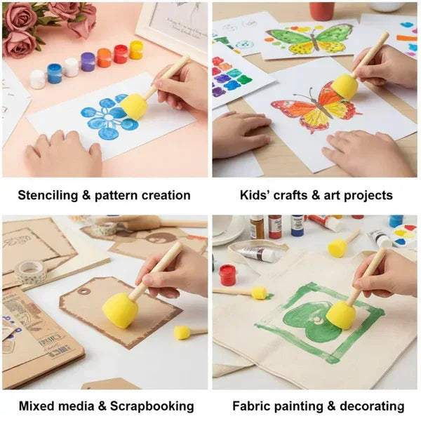 sponge daubers, kids painting tools, foam stamp brushes, wooden handle sponge brushes, craft tools for kids, DIY art supplies, sponge dabbers, dot painting tools, children art kit