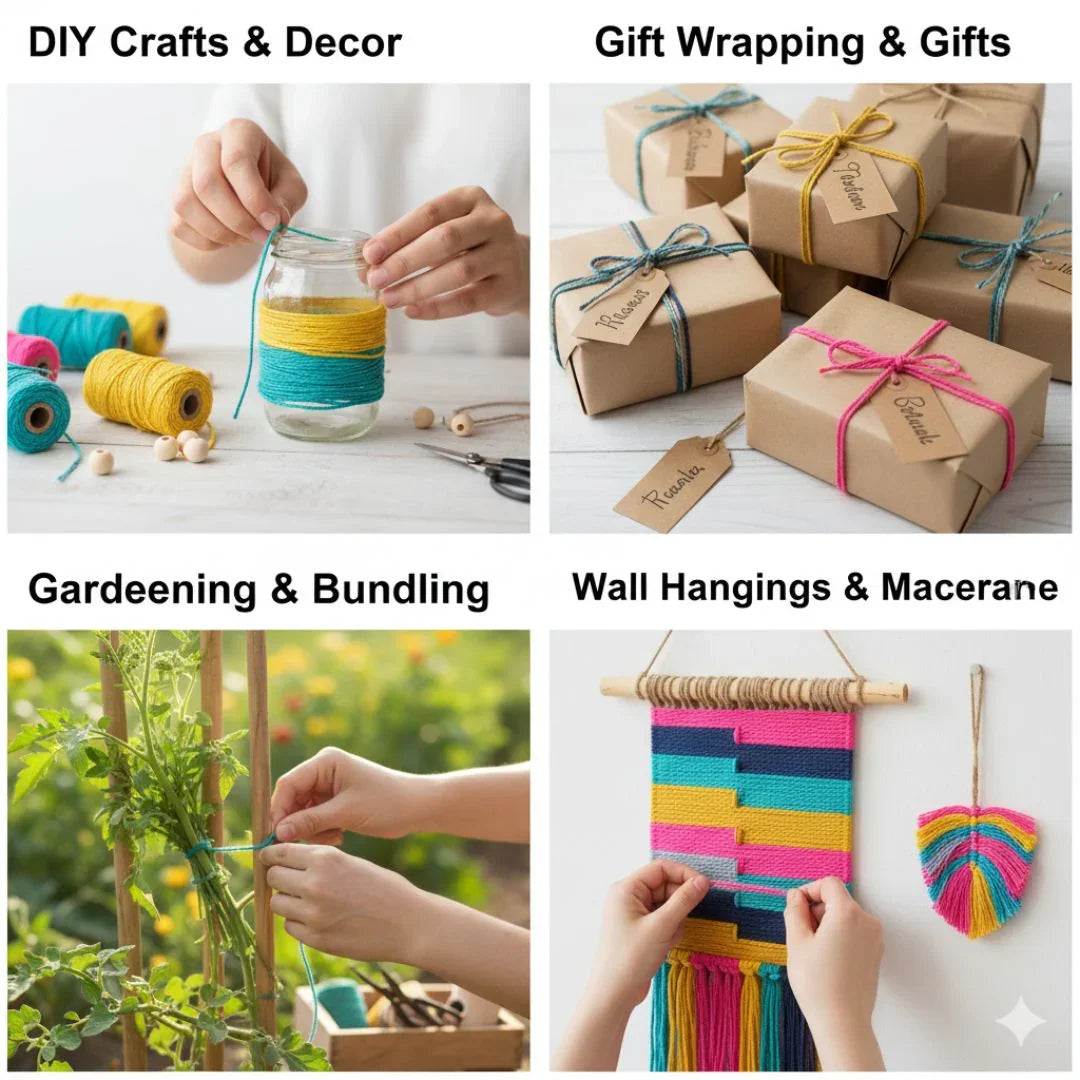 Cotton Craft Rope, Macramé Cord, Sewing Thread, Embroidery Yarn, DIY Craft Supplies, Multicolour Cotton Twine 🧵