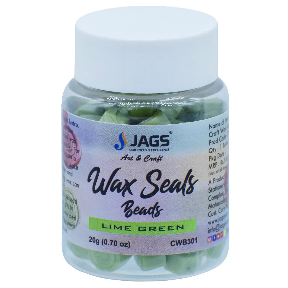 Jags Craft Wax Seal Beads 20Gsm Lime Green CWB301