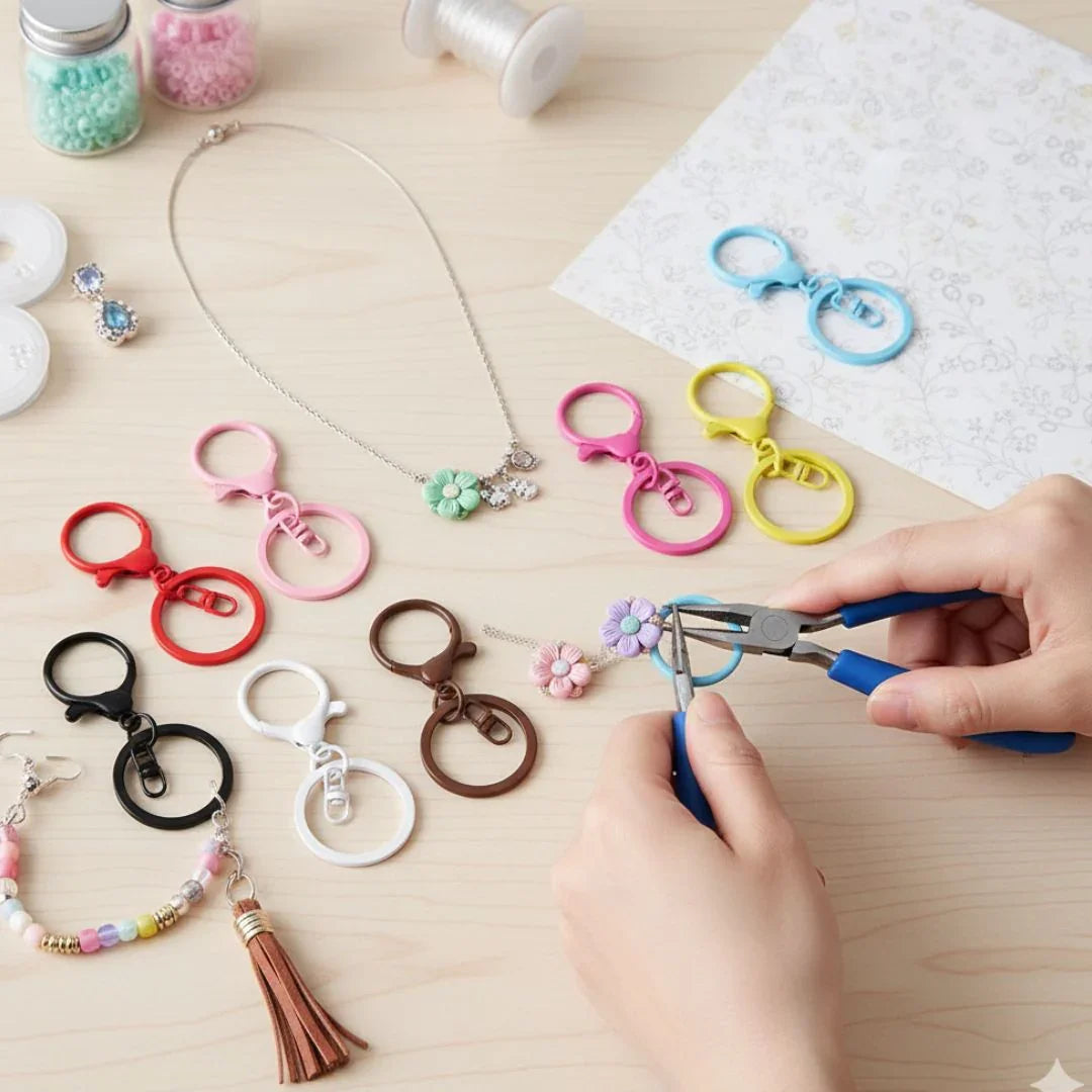 Keep your keys and charms stylishly organized with these vibrant metal key rings featuring matching hooks. Perfect for DIY craft lovers, these rings can be used for keychains, bag charms, resin art, and personalized gifts!