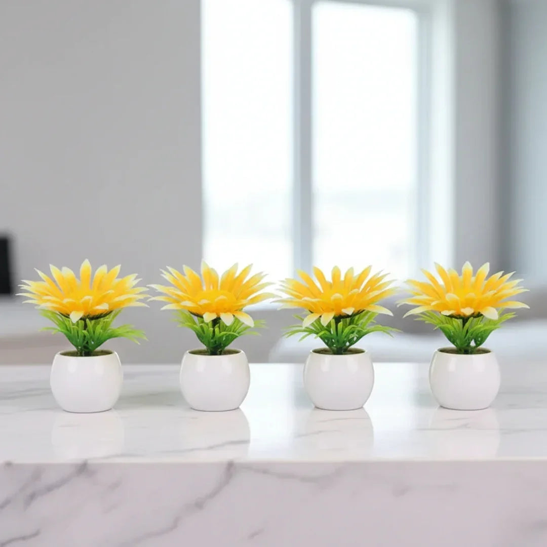 Miniature Yellow Daisy Plants – Realistic Scenery Decor (Set of 4)
