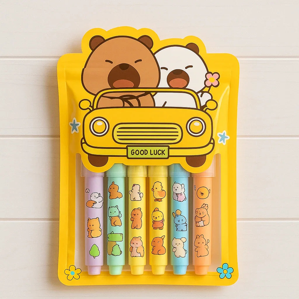 Premium Cartoon Pastel Highlighter l Pack of 6 Markers l Return gift