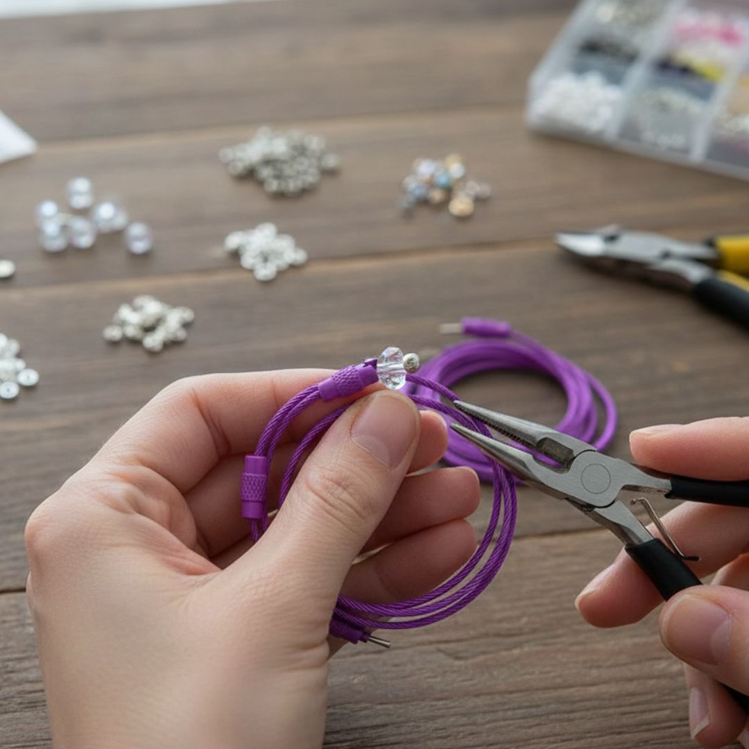 Round Keychain Clasp Lock Small 50 mm (5 Pcs) | Pack of 1: Small size, big utility These round keychain clasp locks are perfect for making keychains, bag charms, ID holders, and DIY accessories. Made with flexible yet sturdy coated wire and secure screw-lock closures, they keep your keys and charms safely in place while staying easy to open and close.