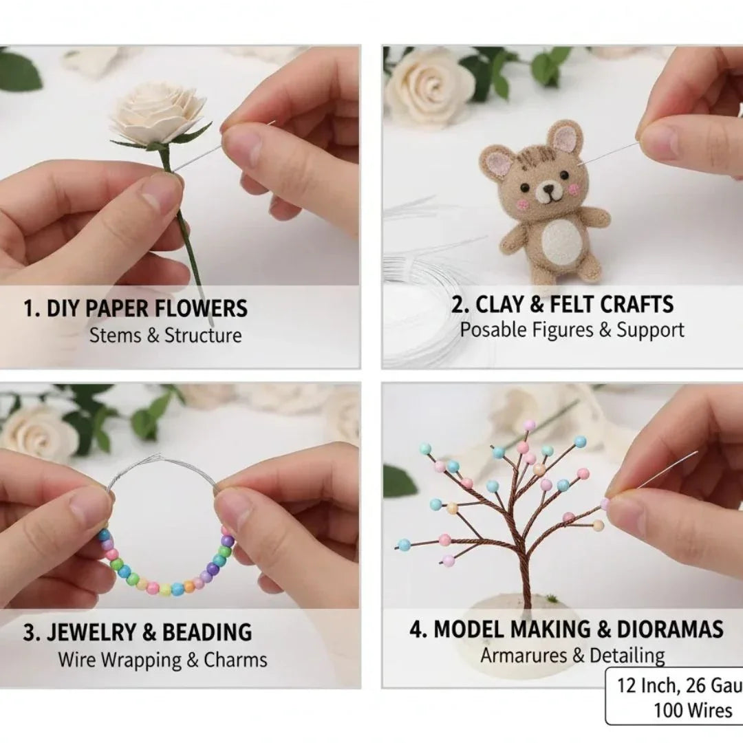 Craft Floral Wire 12 Inch | 26 Gauge | White | Pack of 100 | Ideal for Flower Making & DIY Projects. This White 26 Gauge Craft Floral Wire is perfect for shaping, supporting, and creating beautiful handmade flowers, bouquets, and craft decorations. Its sturdy yet flexible design makes it easy to twist, bend, and combine with pipe cleaners and floral tapes for professional-looking floral arrangements and creative DIY projects.